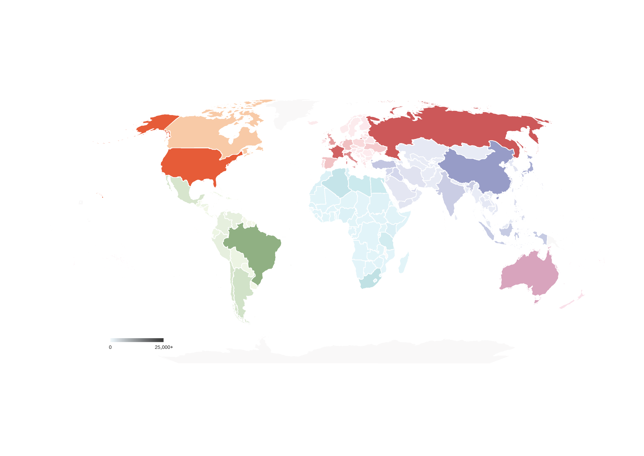 The geographical distribution of DSGR which indicates a global representation is shown below. The different colours represent the six different geographic regions in DSGR individually. Whereas, the shades represent the number of samples per country within each region
